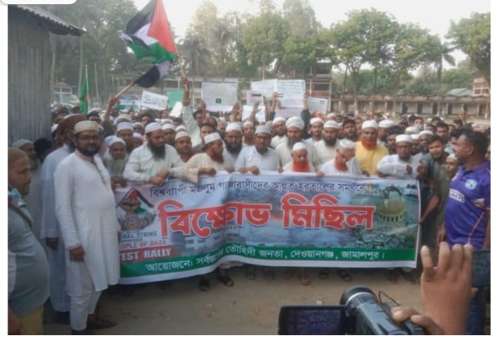 উপজেলার দেওয়ানগঞ্জ পৌর শহরের লোকজন পৌর-বাজার এলাকায় বিক্ষোভ করেন। এছাড়াও বাহাদুরাবাদ ইউনিয়নের সর্দারপাড়া, ঝালোরচর এলাকা সহ চর আমখাওয়া ইউনিয়নের সানন্দবাড়ী এলাকার লোকজন বাংলাদেশের পক্ষহতে ফিলিস্তিন কে সমর্থন জানিয়ে ইসরাইলি গণহত্যা বন্ধের প্রতিবাদে বিক্ষোভ মিছিল করেছেন।
