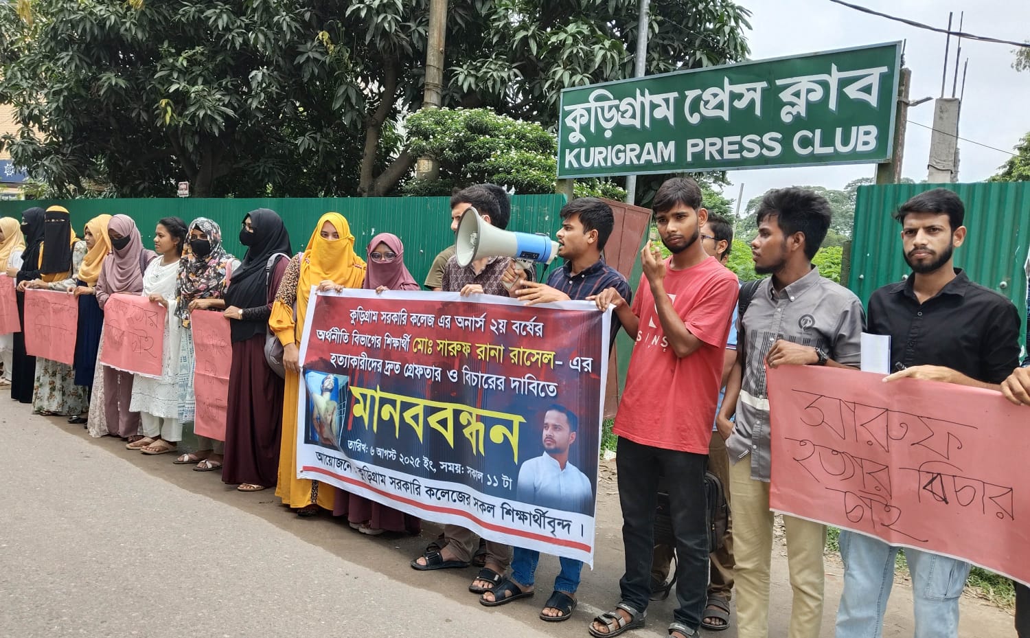 শিক্ষার্থী হত্যার প্রতিবাদে কুড়িগ্রামে মানববন্ধন করেছে সহপাঠী ও স্বজনরা