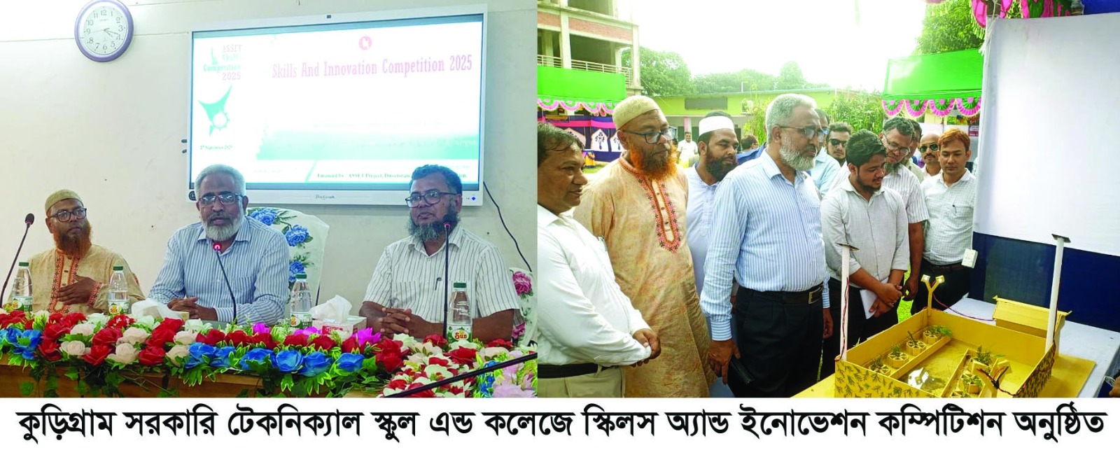কুড়িগ্রাম সরকারি টেকনিক্যাল স্কুল এন্ড কলেজে স্কিলস অ্যান্ড ইনোভেশন কম্পিটিশন ২০২৫ অনুষ্ঠিত হয়েছে। কারিগরি শিক্ষার্থীদের মেধা ও উদ্ভাবনী শক্তি বিকাশের লক্ষ্যে ২৭ সেপ্টেম্বর’২০২৫ইং দুপুরে কুড়িগ্রাম সরকারি টেকনিক্যাল স্কুল এন্ড কলেজে স্কিলস অ্যান্ড ইনোভেশন কম্পিটিশন ২০২৫-এর প্রাতিষ্ঠানিক পর্বের প্রতিযোগিতা অনুষ্ঠিত হয়। এতে প্রতিষ্ঠানটির ০৪ টি টেকনোলজি থেকে মোট ১৫টি উদ্ভাবনী প্রকল্প অংশগ্রহণ করে।